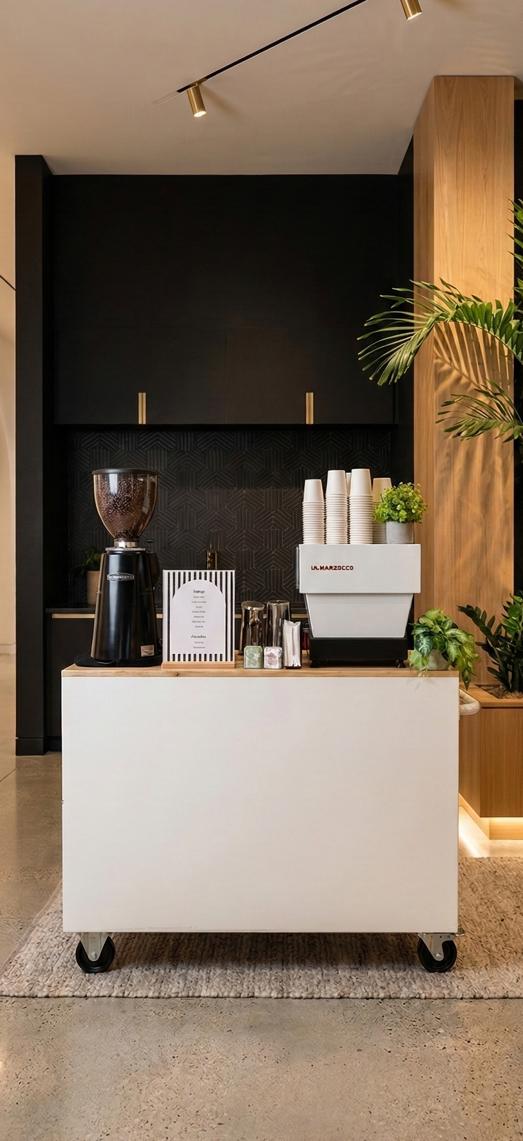 Our mobile coffee cart doesn’t just serve drinks — It draws guests in, sparks conversations, and becomes a natural gathering point